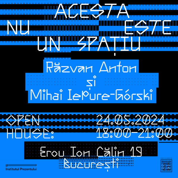 Institutul Prezentului continuă seria de acțiuni ACESTA NU ESTE UN SPAȚIU, dedicate spațiului în care activează Institutul Prezentului, cu intervenția Exerciții de orientare a artiștilor Răzvan Anton și Mihai Iepure-Górski, un laborator de practici artistice care va fi deschis publicului în 24 mai. Ediția 2024 a intervențiilor se derulează în cadrul unor rezidențe acordate artiștilor invitați.