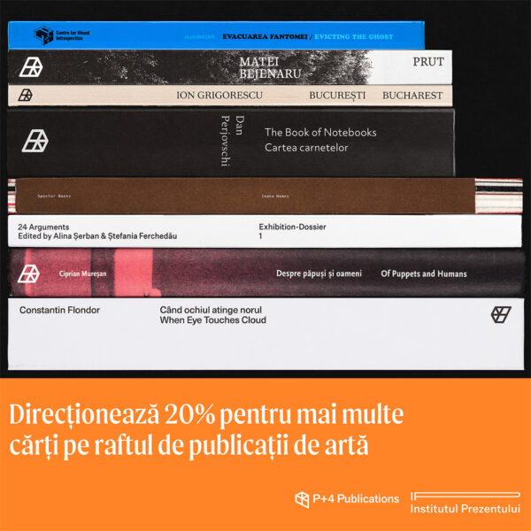 Și în acest an poți alege să susții realizarea publicațiilor noastre prin mecanismul de redirecționare a 20% din impozitul pe profit / venit al firmei tale. Titlurile la care lucrăm în prezent sînt: Timelines, o serie de buzunar cuprinzînd studii de caz dedicate artei recente din România; București, o privire asupra orașului socialist. Locuri, evenimente, acțiuni.