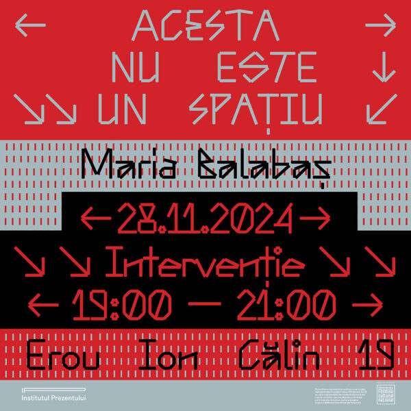 ACESTA NU ESTE UN SPAȚIU continuă cu intervenția artistei Ana Maria Micu, care poate fi vizionată în luna martie. Ediția 2023 a intervențiilor în spațiul Institutului Prezentului se derulează în cadrul unor rezidențe de creație acordate artiștilor invitați.