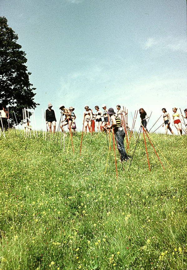 The summer camp practice of Timișoara Arts High School students, Strungari, 1975. “Nature As Sign of a New Attitude. Water and Sand. Water and Stone. Wind and Tree. The Hill,” workshop coordinated by Elena și Doru Tulcan. Courtesy of the artists
