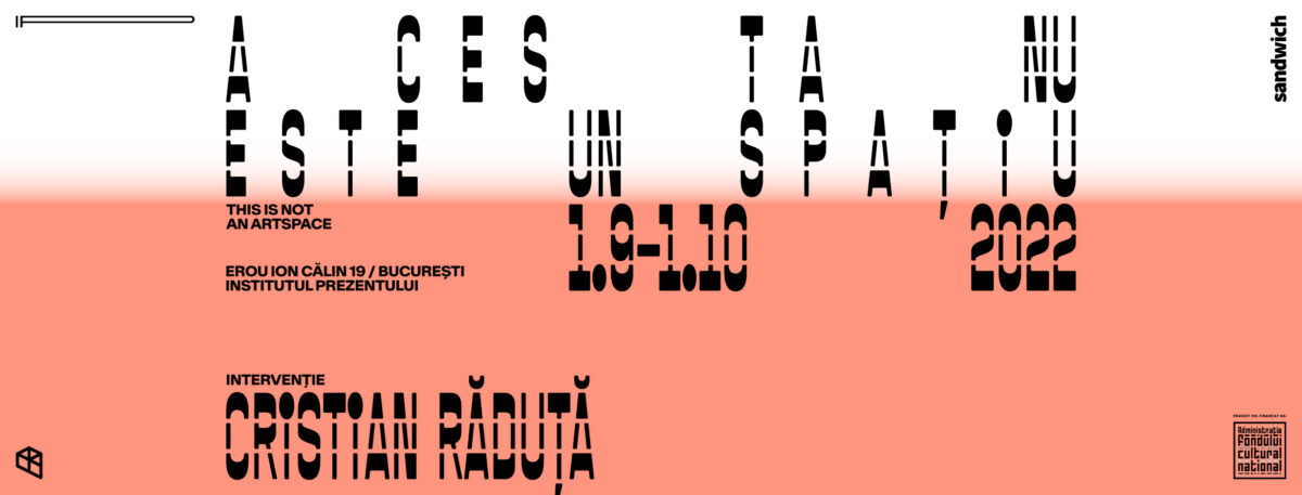 In the frame of THIS IS NOT AN ARTSPACE, we are opening the series of artistic interventions „Mimicking/Mining Normality,” dedicated to the Institute of the Present’s working space, with the works conceived by artist Cristian Răduță. The opening event on September 1st is followed on September 3rd by a new edition of the Open House centred on the P+4 Publications editorial programme.